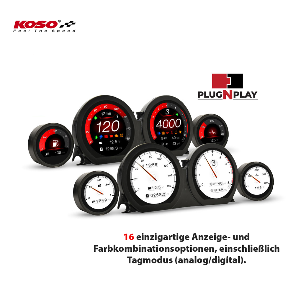 This plug-and-play TFT gauge set for Harley-Davidson Bagger (2014 to 2023) offers smartphone integration, allowing you to control your instrument panel directly from your device. Connect your gauges to your smartphone using the KOSO K Link app and monitor real-time data from your motorcycle: speed, fuel level, oil temperature, gear position, RPM, peak power, horsepower, tire pressure, and more. You can even see your motorcycle's location in the app, so you'll never have to search for it in crowded places again!