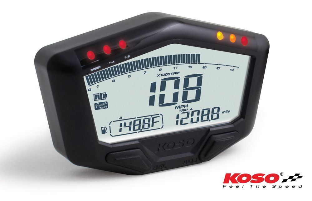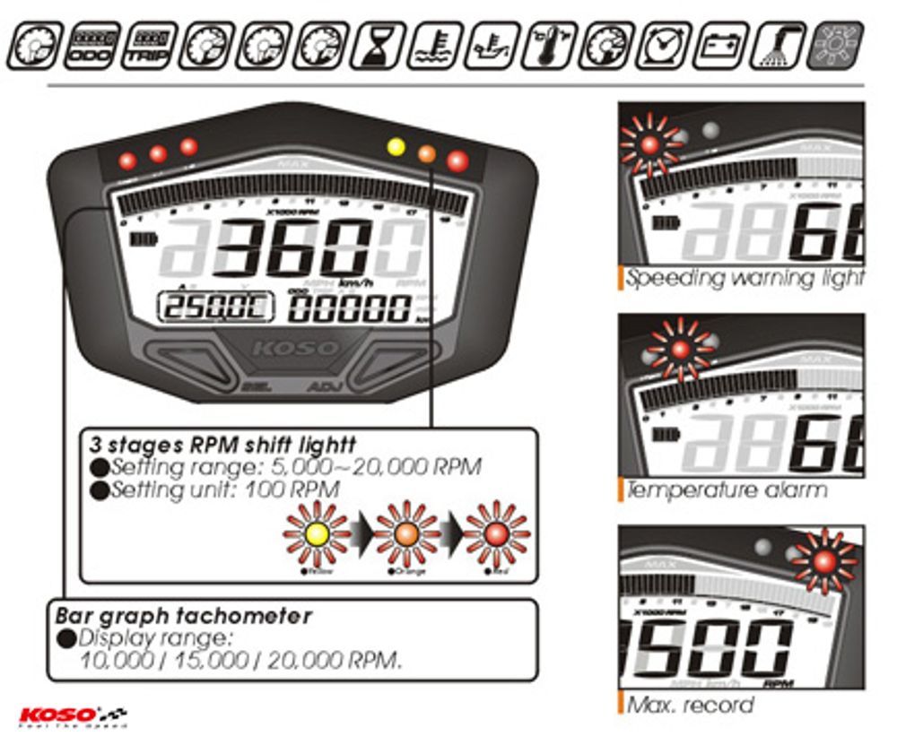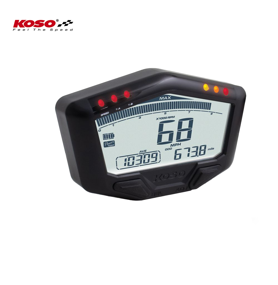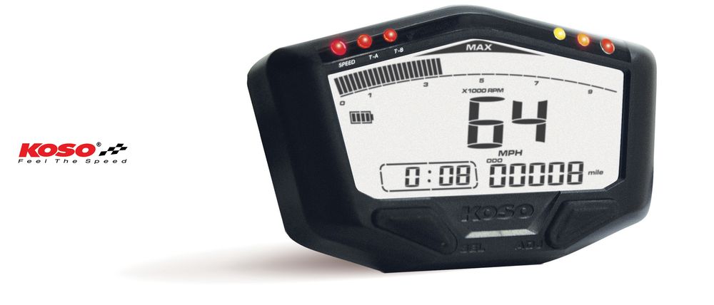 The new DB02 works with an internal battery and was developed primarily for OFF-ROAD ATVs and motorcycles, which are usually equipped without their own battery. The new dynamic design of the DB-02 can be easily combined with most motorcycles and ATVs. The bar tachometer is adjustable in the speed range so that it can be adapted to different engine types. The new three-stage switching light allows you to visually signal the perfect switching time. In addition to the bar speed display, we have also integrated a switchable digital tachometer into the DB02, which can be switched on instead of the speed display.