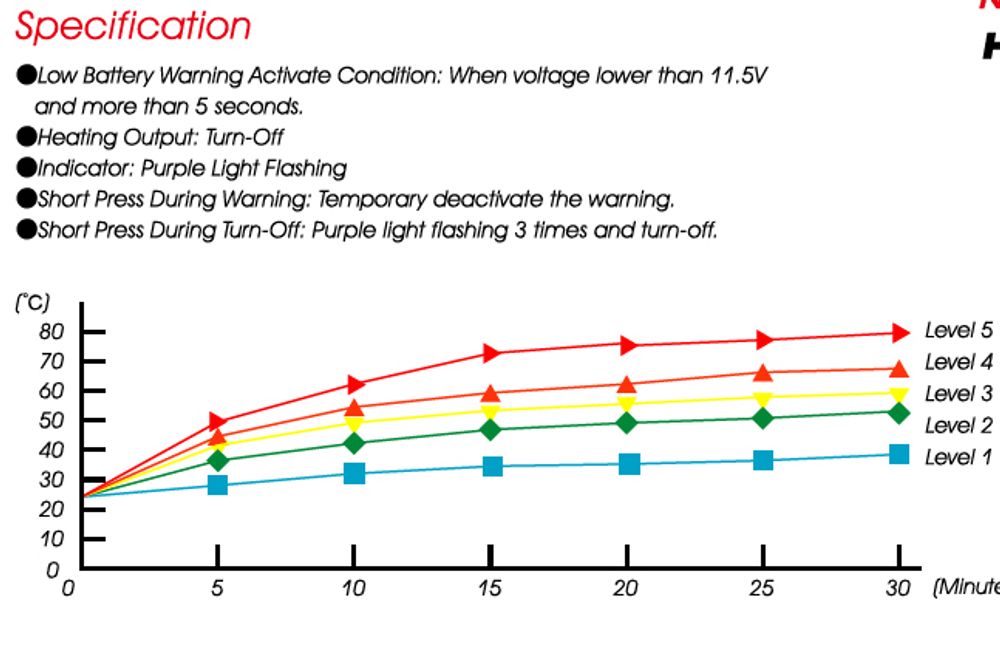 - Integrated thumb switch allows you to easily change the temperature levels without taking your hands off the handlebars.