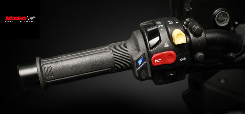 - Integrated thumb switch allows you to easily change the temperature levels without taking your hands off the handlebars.