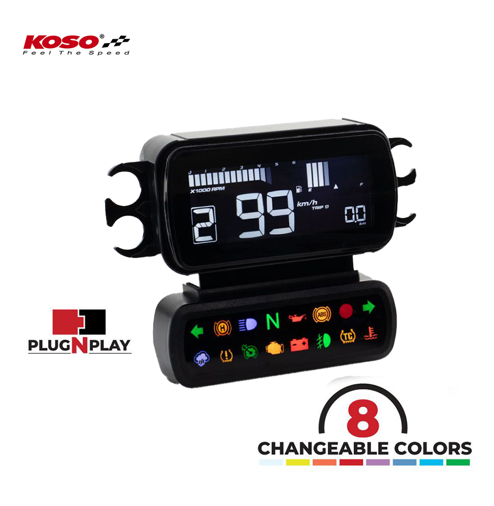 This gauge also features important readings such as engine temperature, battery voltage, tire pressure and a complete system of indicator lights to monitor your motorcycle's vital signs. This gauge fits directly into the stock wiring harness and works directly with your motorcycle's CANBUS system.