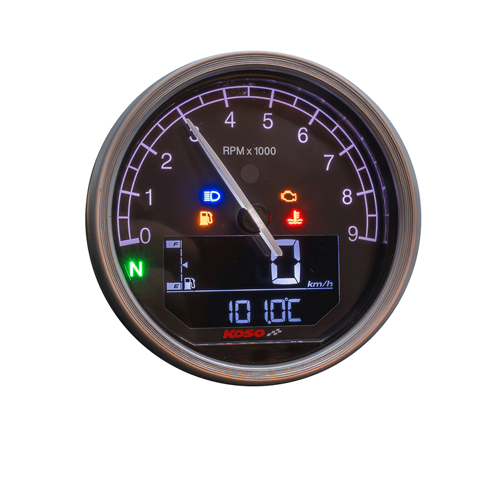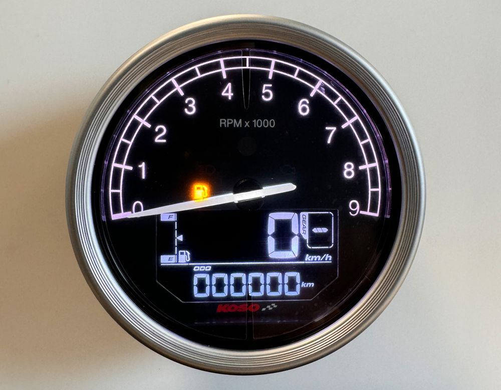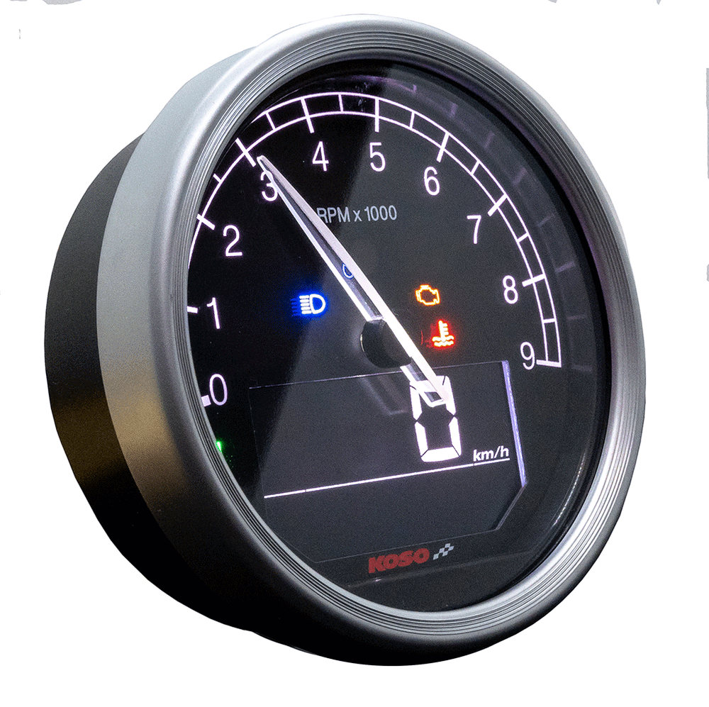 Koso D80 TNT-05 Tachometer / Drehzahlmesser km/h, MPH – ABE, silberner Ring
