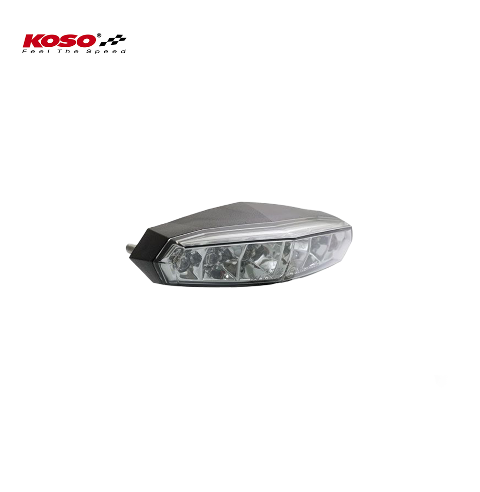 - Black plastic housing with tinted glass or clear glass with red insert.