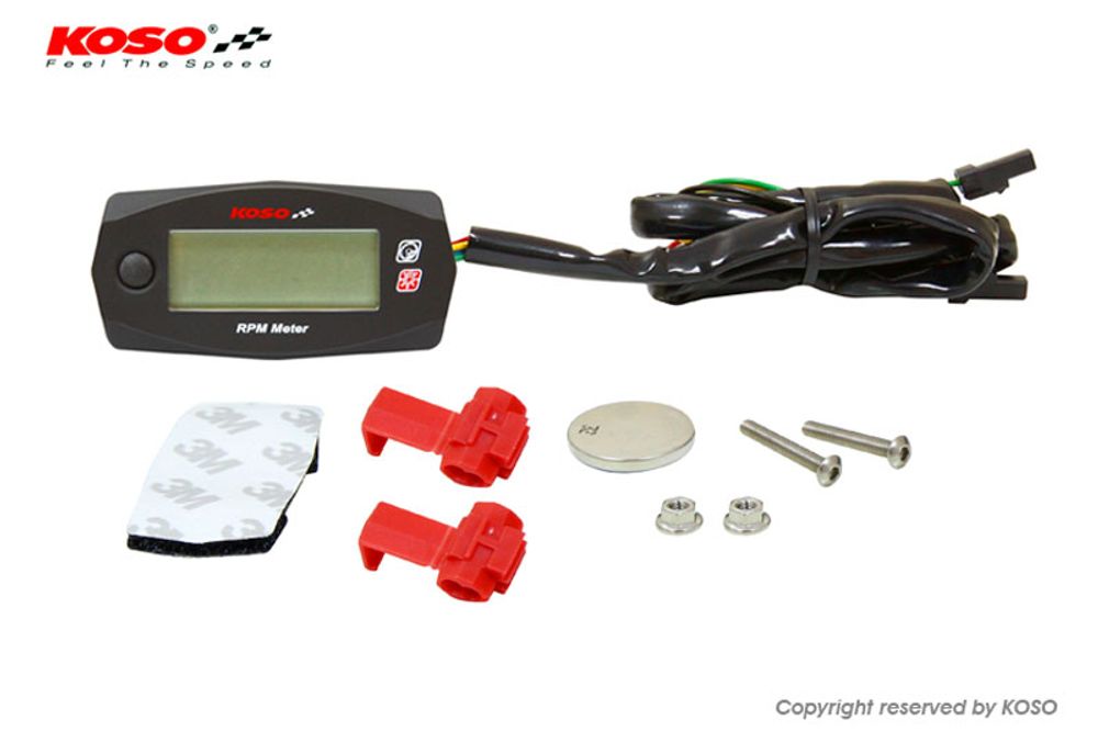 This mini LCD meter developed by KOSO has the function of recording the current speed. You can connect the battery-assisted device to any engine that runs on fuel. The lifespan of the internal CR2032 battery is approximately 350 hours.