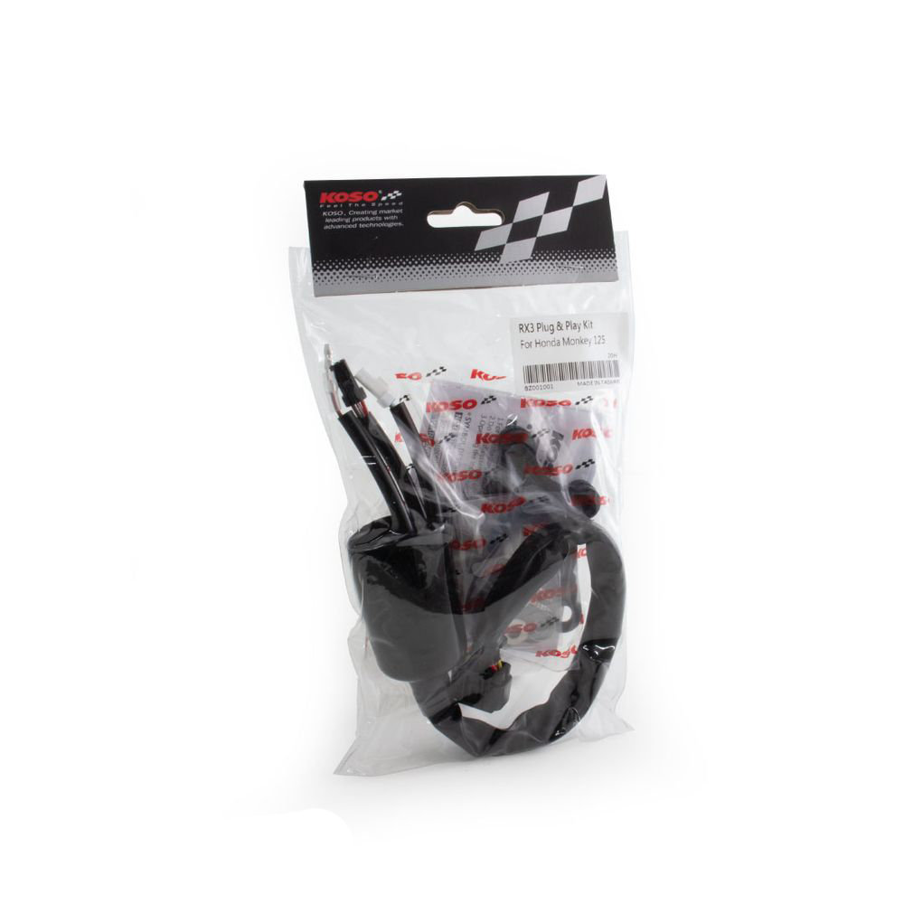Koso has developed two connectors that will make your life easier when mounting your RX-3 to a Honda MONKEY®.