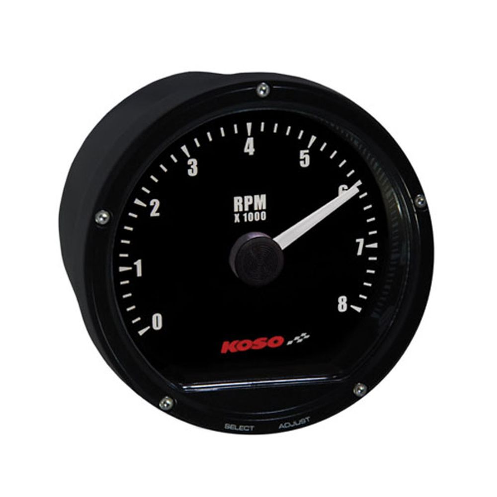 Anleitung D75 Drehzahlmesser mit schwarzem Ziffernblatt und schwarzer Oberflaeche 8000 U/min