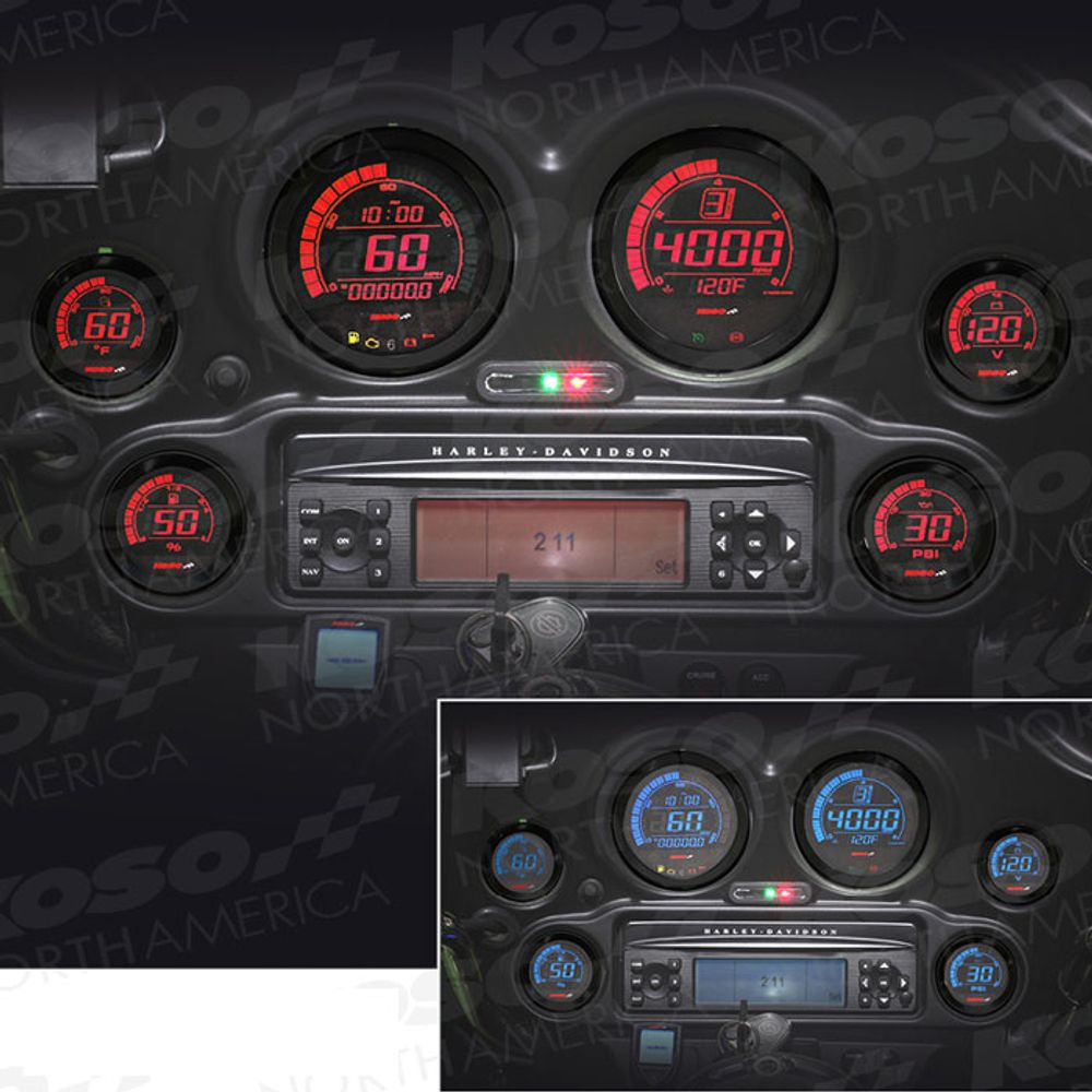 Das Koso HD-02 Set wurde speziell für Harley-Davidson® Modelle FLHT, FLHX und FLTR von 2004 bis 2013 entwickelt und ist die perfekte Lösung für alle, die ihre Instrumente aufrüsten möchten.