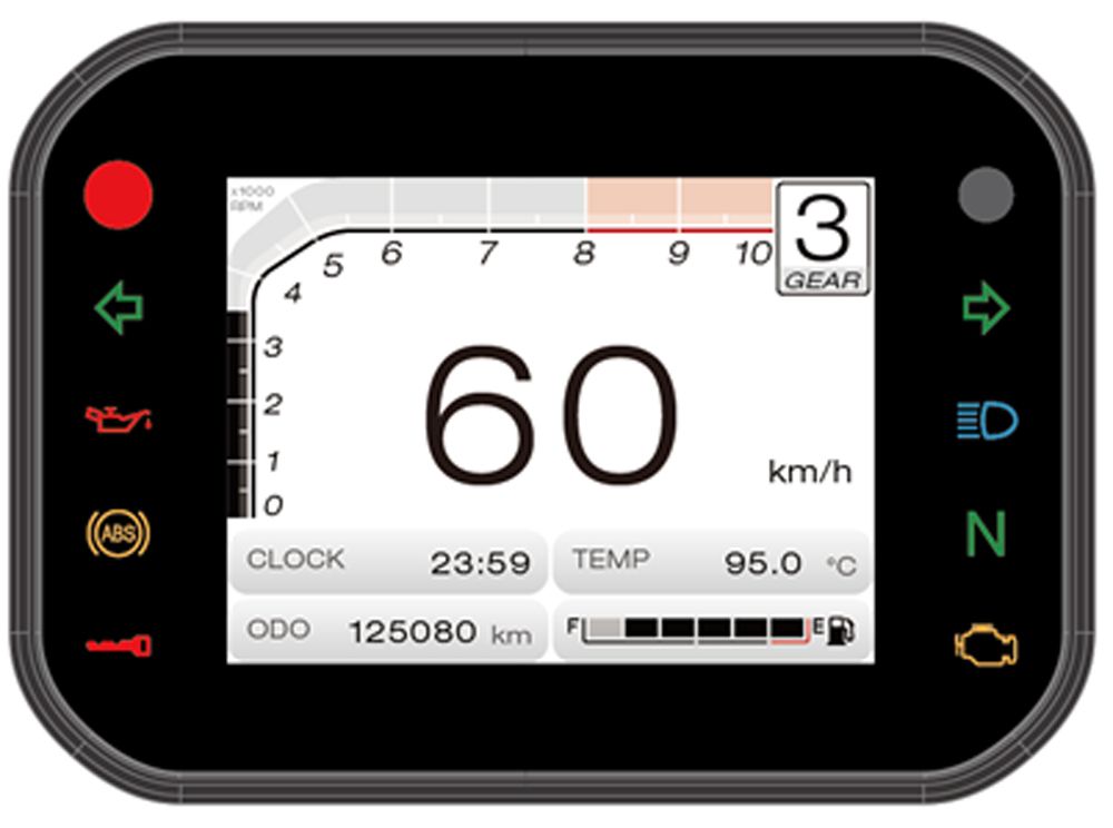 Das RX-3S TFT-Multifunktionsmessgerät setzt neue Maßstäbe im Zubehörmarkt. Mit einem 3,5-Zoll-TFT-LCD-Farbdisplay und einer intuitiven Benutzeroberfläche bietet es eine Vielzahl an Funktionen für Motorräder, Trikes und Scooter. Neben klassischen Anzeigen wie Tachometer, Drehzahlmesser, Kilometerzähler und Gangpositionsanzeige überzeugt es mit erweiterten Features wie Zielgeschwindigkeit und Zielentfernung.