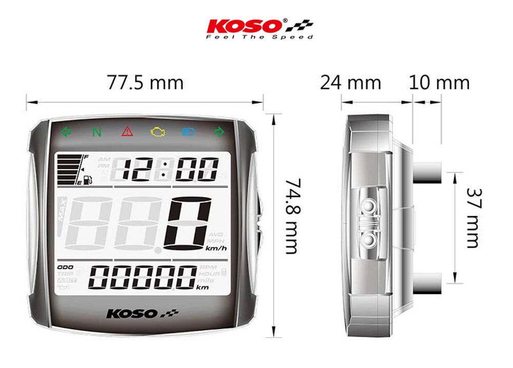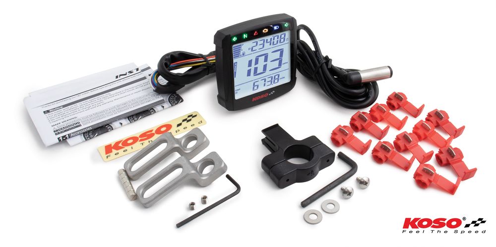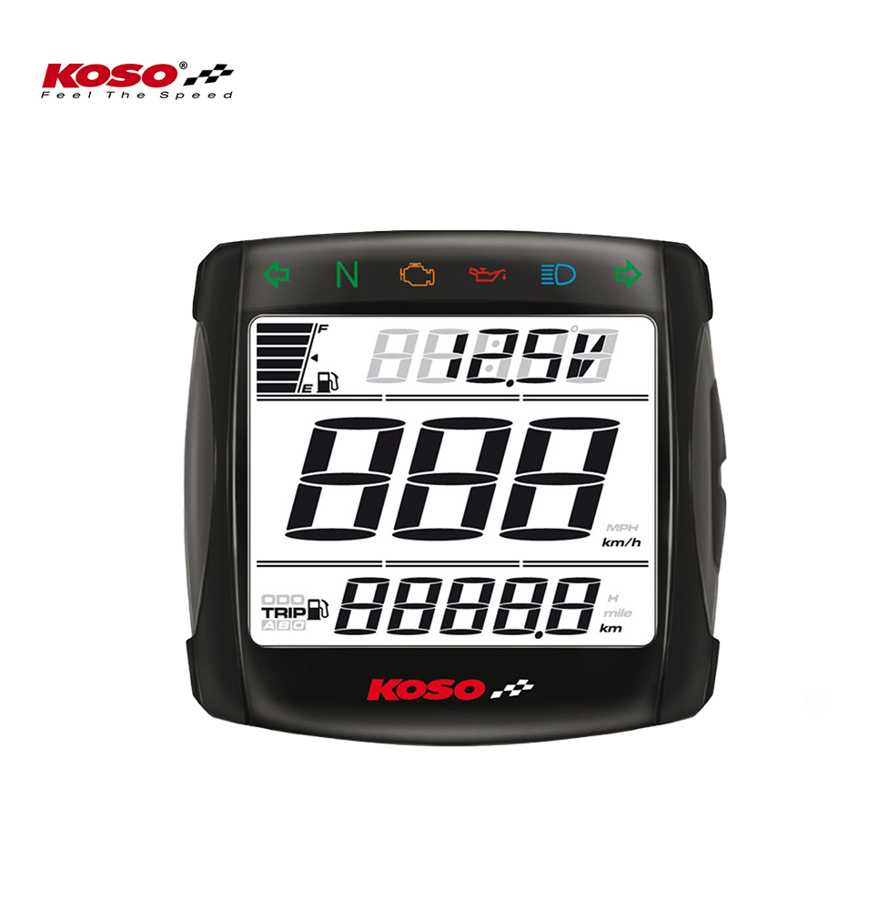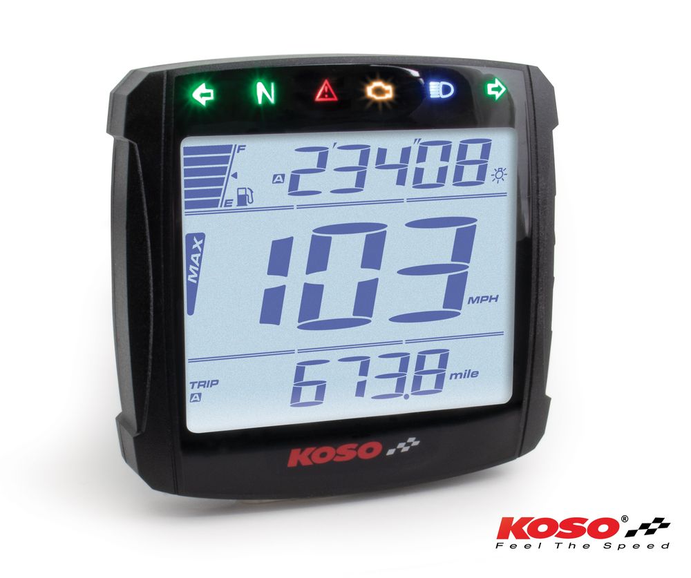 Der XR-S 01 Cockpit ABE Tachometer von Koso ist mit E-Prüfzeichen ausgestattet und wurde speziell für Motorräder, ATVs und Scooter entwickelt. Er bietet eine Vielzahl an Funktionen zur Überwachung von Geschwindigkeit, Fahrdaten, Spannung und Kraftstoffstand. Mit seiner klaren Anzeige und individuellen Anpassungsmöglichkeiten ist er ein zuverlässiges Instrument für verschiedenste Fahrzeuge.